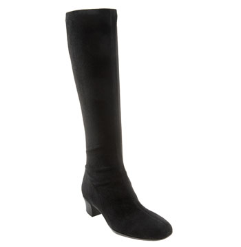 Soft faux suede shapes a stretch-to-fit boot, supported with a metal shank. Center seam lends modern detail, while the latex outsole enhances comfort. Color(s): black suede. Brand: Munro. Style Name: Munro 'Samantha' Tall Stretch Boot. Style Num