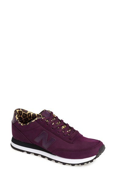 Leopard-print lining lends an exotic, streetwise twist to a smart monochrome sneaker. For over a century, New Balance has dedicated itself to producing premium footwear to aid athletes in their pursuit of excellence-seamlessly blending function and fashion to give you the performance technology you need and the style you want. Color(s): black, purple, teal. Brand: New Balance. Style Name: New Balance '501' Sneaker (Women). Style Number: 760794.