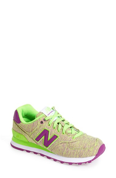 Vivid neon colors update classic, eye-catching sneakers inspired by television static. For over a century, New Balance has dedicated itself to producing premium footwear to aid athletes in their pursuit of excellence-seamlessly blending function and fashion to give you the performance technology you need and the style you want. Color(s): green/ purple. Brand: New Balance. Style Name: New Balance '574 - Static' Sneaker (Women). Style Number: 760783 1.