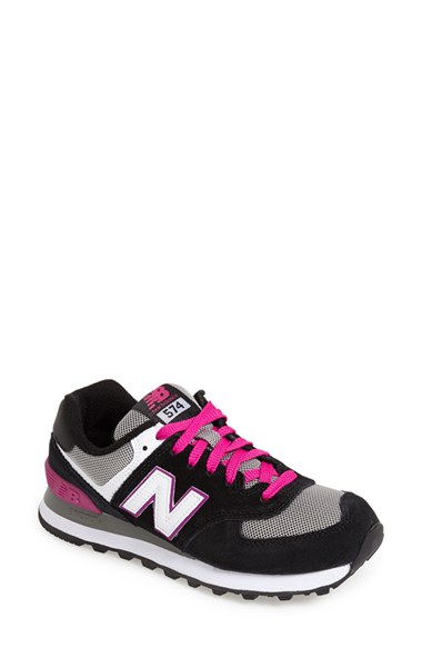 Retro style and classic design define a cool street sneaker with smart, sporty detailing. Color(s): black/ pink. Brand: New Balance. Style Name: New Balance '574' Sneaker (Women). Style Number: 670090 42.