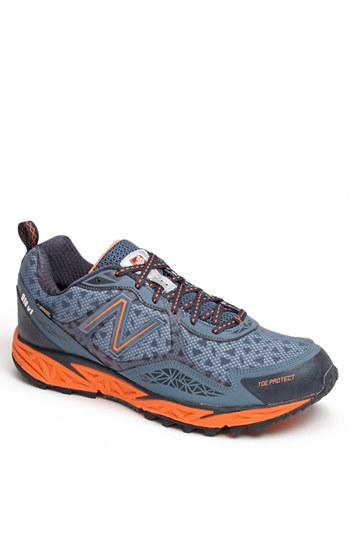 Blaze new trails in an ABZORB-enhanced running shoe designed with aggressive traction and rugged Rock Stop protection. A Gore-Tex membrane seals out moisture, while the N-LOCK external support system keeps you snug and steady. Color(s): navy/ orange. Brand: New Balance. Style Name: New Balance '910' Trail Running Shoe (Men). Style Number: 903414.