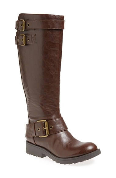 The essential knee-high boot stays timeless and versatile in a round-toe cut and subtly textured vegan leather. A go-to style you'll reach for again and again. Color(s): black, brown. Brand: Nine West. Style Name: Nine West 'Aragosta' Moto