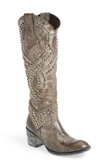 Mixed studs amplify the rugged Western vibe of a handcrafted boot shaped from weathered, artfully distressed leather. Color(s): snow/ grey. Brand: OLD GRINGO. Style Name: Old Gringo 'Belinda' Boot (Women). Style Number: 859754.