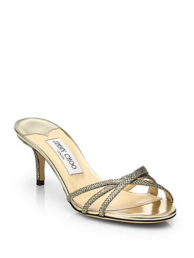 Perforated Metallic Leather Espadrille Wedge Slides $248.16 Style: 437844972079