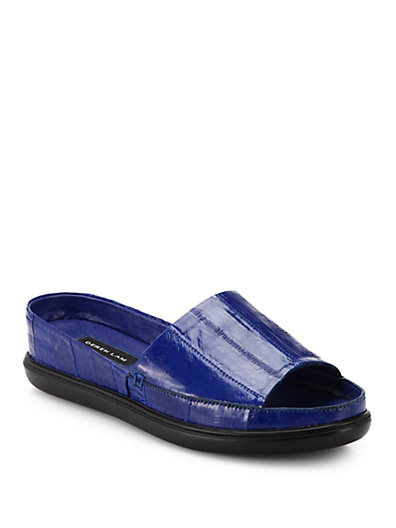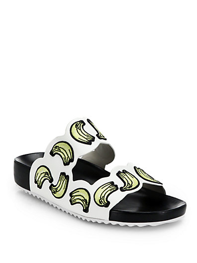 Cords of leather layer and cross to secure these effortless slide sandals, showcasing a playful cactus print. ;Leather upper;Suede lining;Rubber sole;Padded insole;Imported
