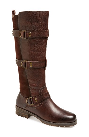 A trio of belted straps wraps the shaft of a knee-high boot crafted from buttery-soft, vegetable-tanned leather with a rich, pebbled texture. Suede panels on the back add a beautiful textual dimension. Color(s): olmo. Brand: Pikolinos. Style Name: PIKOLIN