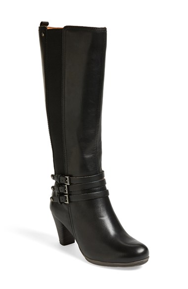 A trio of buckle straps extend the everyday sophistication of a knee-high boot cast in soft leather with a stretch elastic panel to provide a custom fit. Color(s): black. Brand: Pikolinos. Style Name: PIKOLINOS 'Verona' Tall Boot (Women). Style