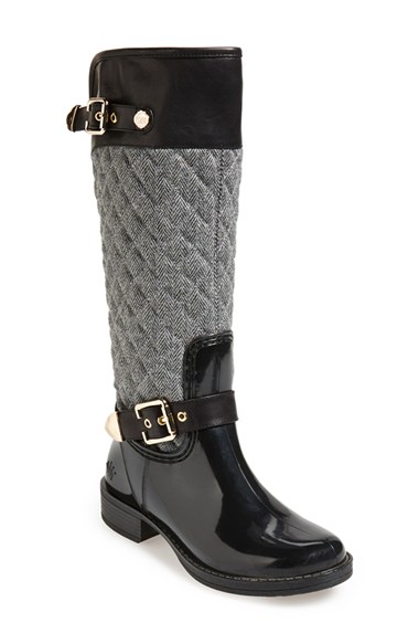 Posh Wellies 'Peacon' Quilted Tall Rain Boot (Women) Grey/ Black Size $99.95 Style: 856656005056