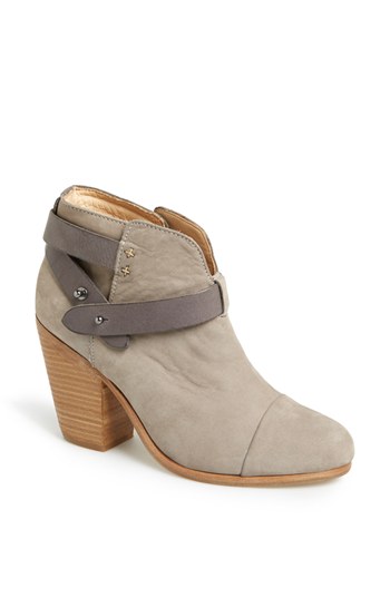 Push-pin hardware modernizes a rustic, cap-toe bootie cut from luscious suede in soft, earthy tones. Color(s): camel two, clay, grey. Brand: Rag & Bone. Style Name: rag & bone 'Harrow' Bootie. Style Number: 564574.