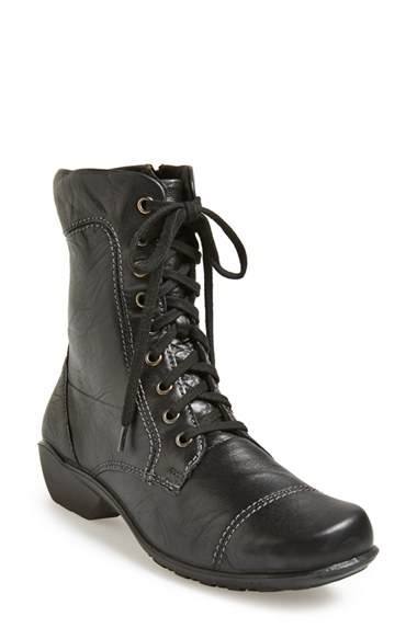 Dramatically textured full-grain leather heightens the vintage sophistication of a lace-up cap-toe boot grounded with a lightweight, comfort-focused sole. Color(s): black, dark brown. Brand: ROMIKA USA LLC. Style Name: Romika 'City Light 88' Lea