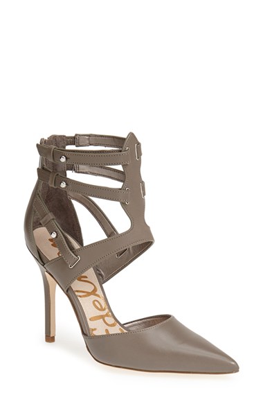 A bold ankle cuff with caged push-stud straps lends streetwise sophistication to a sleek, pointy toe leather pump. Color(s): black leather, sharkskin leather. Brand: Sam Edelman. Style Name: Sam Edelman 'Durham' Pointy Toe Leather Pump (Women).