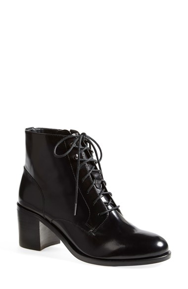 A simplified lace-up bootie in semigloss leather provides a sharp, vintage-inspired finish for your look. Color(s): black leather. Brand: Sam Edelman. Style Name: Sam Edelman 'Jardin' Leather Bootie (Women). Style Number: 465648.