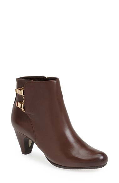 Gleaming buckle clasps lend vintage appeal to an essential leather bootie cast in a slim silhouette. Color(s): black, dark brown. Brand: Sam Edelman. Style Name: Sam Edelman 'Marmont' Leather Bootie (Women). Style Number: 756154.