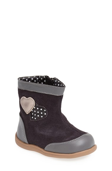 Polka dots and hearts charm sweet cold-weather boots styled with a color-blocked mix of suede and textured leather. An easy side zip lends lickety-split on/off style. Color(s): grey. Brand: See Kai Run. Style Name: See Kai Run 'Shelby' Leather B