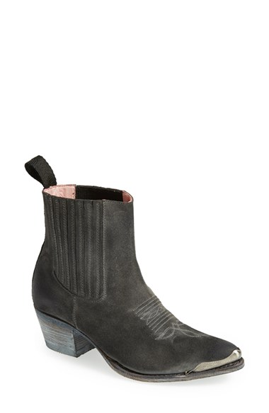 Classic embroidery and antique metal-toe detailing define a handcrafted Western-style bootie built with a smart Goodyear welt. Color(s): grey. Brand: Sendra Boots. Style Name: Sendra 'Linda' Leather Bootie (Women). Style Number: 824535.