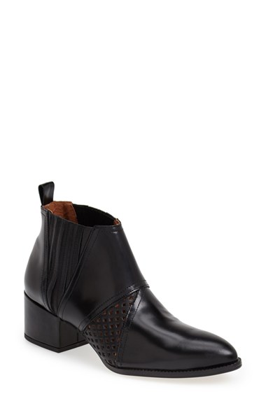 Perforated insets and geometric, mixed-finish paneling lend a fresh, mod vibe to a must-have bootie grounded by a low block heel. Color(s): black, grey. Brand: SIXTYSEVEN. Style Name: SIXTYSEVEN 'Aria' Perforated Leather Bootie (Women). Style Nu