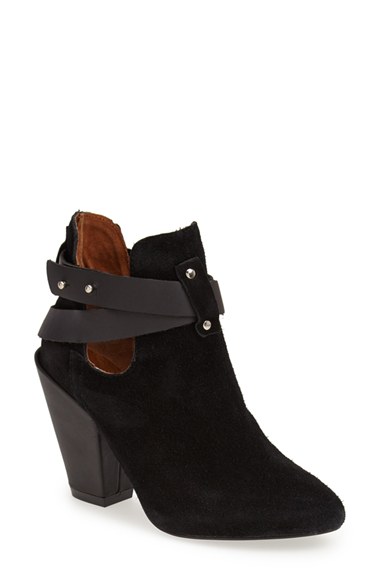 A wraparound strap extends the clean-cut, utilitarian appeal of a pointy-toe ankle bootie finished with breezy side cutouts. Color(s): black, black suede, taupe. Brand: SIXTYSEVEN. Style Name: SIXTYSEVEN 'Leah' Bootie (Women). Style Number: 4516
