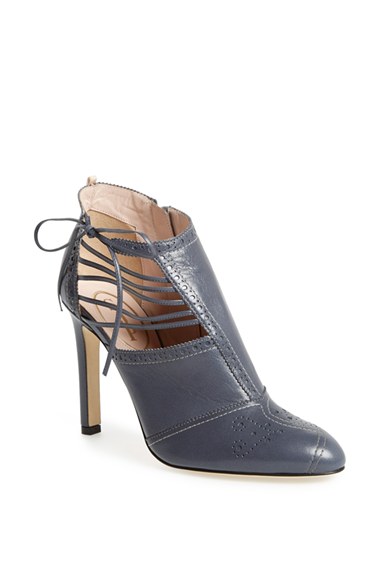 Named for the extraordinary Alexander McQueen. This bootie makes such a wonderful strong impression. The grey allows for it to feel elegant but it's equally street."-Sarah Jessica ParkerShow some skin in SJP's beguiling, brogue bootie, lace