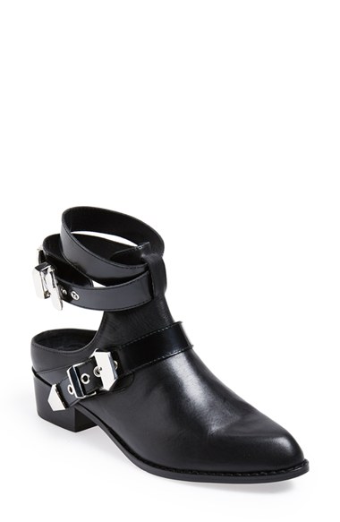 Classic Western style and the modern bootie meet in this rich leather boot detailed with gleaming metal hardware. The buckled ankle strap can be removed for maximum versatility. Color(s): black. Brand: SOL SANA. Style Name: Sol Sana 'Samuel' Boo