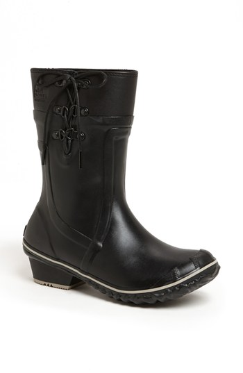 Lace-up detailing and a color-pop heel style an iconic boot fashioned from vulcanized rubber and waterproof, full-grain leather for a fashion-forward look that's impervious to the elements. Color(s): black, boysenberry/ dark brown, nocturnal/ pink. B
