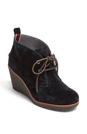 Rich suede and a textured wedge heel lend effortless sophistication to a lace-up ankle bootie. Color(s): black suede, greige, navy. Brand: Sperry Top-Sider. Style Name: Sperry Top Sider 'Harlow' Bootie. Style Number: 913860 2.