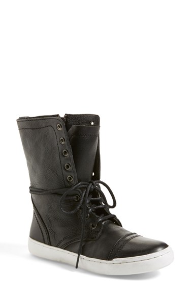 Look street-chic in a trend-right sneaker boot wrapped by slender laces and set on a classic white sole. Color(s): black leather, cognac leather, pewter. Brand: Steve Madden. Style Name: Steve Madden 'Resolvve' Sneaker Boot (Women). Style Number: 836422.
