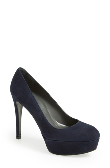 Lush suede enriches a sky-high platform pump with a flirty low-cut topline. Color(s): moonglow aniline, navy suede, slate suede. Brand: Stuart Weitzman. Style Name: Stuart Weitzman 'Mae' Suede Pump (Women). Style Number: 980301.