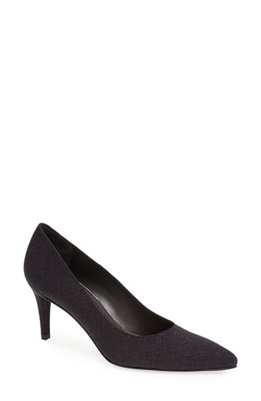 Lavish Saffiano leather calls attention to the timeless silhouette of an elegant pointy-toe pump. Stuart Weitzman shoes are favorites among editors, stylists and celebrities and it s no wonder. Each Stuart Weitzman shoe is crafted in Spain with a keen attention to detail and made to feel as great as it looks. Color(s): black saffiano calf, mushroom saffiano calf, navy saffiano calf. Brand: Stuart Weitzman. Style Name: Stuart Weitzman 'Pinot' Pump (Women). Style Number: 805307 1.