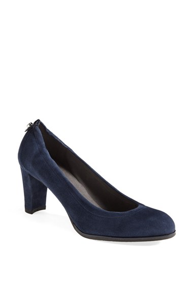 A classic round-toe pump lifted with a hint of a platform features an elasticized topline for a slip-free fit and a rubber sole for smart, take-anywhere traction. Soft ultrasuede inside offers plush comfort. Stuart Weitzman shoes are favorites among edito