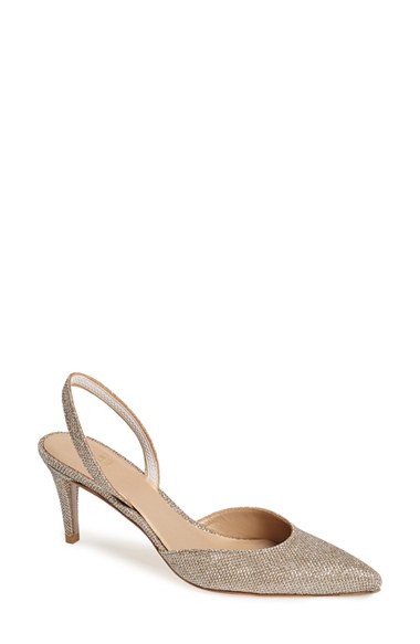 A shimmer-struck slingback pump punctuates your evening ensemble with the perfect touch of poised glamour. Color(s): platinum noir. Brand: Stuart Weitzman. Style Name: Stuart Weitzman 'Sasha' Slingback Pump (Women). Style Number: 852854.
