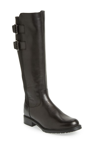 A duo of buckled straps details the back of a smooth leather riding boot styled with wide elastic gores for a custom fit. Color(s): black, dark brown. Brand: The FLEXX. Style Name: The FLEXX 'Landlord' Riding Boot (Women). Style Number: 8267.
