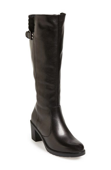 A sleek buckle strap and channel-quilted suede panel at the back shaft lend effortless everyday refinement to a knee-high leather boot. Color(s): black, dark brown. Brand: The FLEXX. Style Name: The FLEXX 'One Trick Pony' Leather Tall Boot (Women). Style Number: 435301.