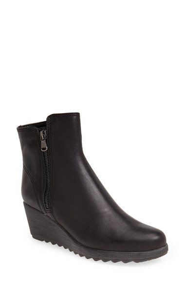 Rippled treads and a woodgrain wedge update a cleanly styled bootie closed with an exposed silvertone zip at one side. Color(s): black. Brand: The FLEXX. Style Name: The FLEXX 'Pic a Winner' Wedge Bootie (Women). Style Number: 14244 1.