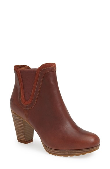 A stacked heel and platform add signature earthy style to a classic Chelsea boot fitted with a comfort-enhancing OrthoLite insole. Color(s): black, glazed ginger. Brand: Timberland. Style Name: Timberland 'Exeter Heights' Platform Chelsea Boot (