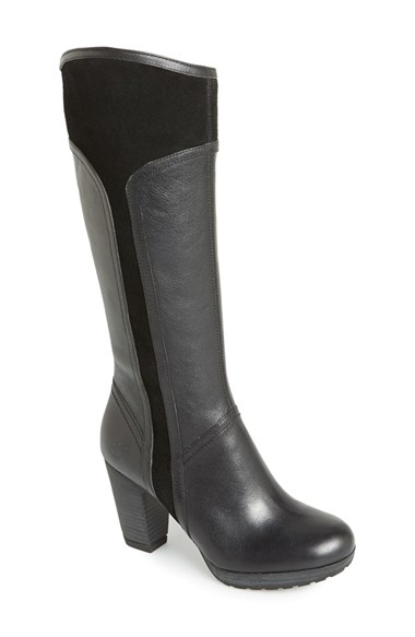 Lush suede accents set off the richly pebbled leather of an essential tall boot designed with Timberland Earthkeepers' eco-conscious philosophy and constructed using sustainable, recycled materials. Color(s): black/ black, blackdnu, brown, glazed gin