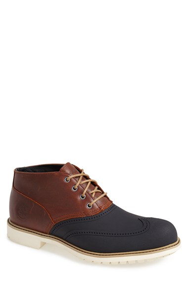 Premium, full-grain leather completes the waterproof design of a classic duck boot updated with brogued wingtip paneling and contrast trim. In keeping with Timberland Earthkeepers' eco-conscious philosophy, recycled materials have been incorporated i
