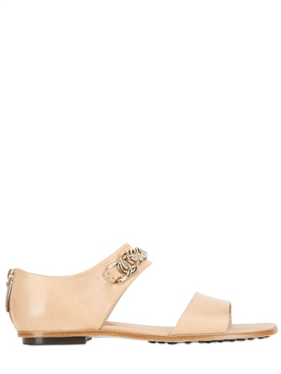 TOD'S FLATS SHOES 10MM LEATHER CHAINED SANDALS