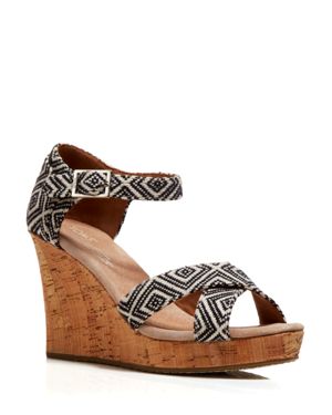 Toms Open Toe Platform Wedge Sandals - Woven Diamond Pattern $69.00 Style: 886468812894
