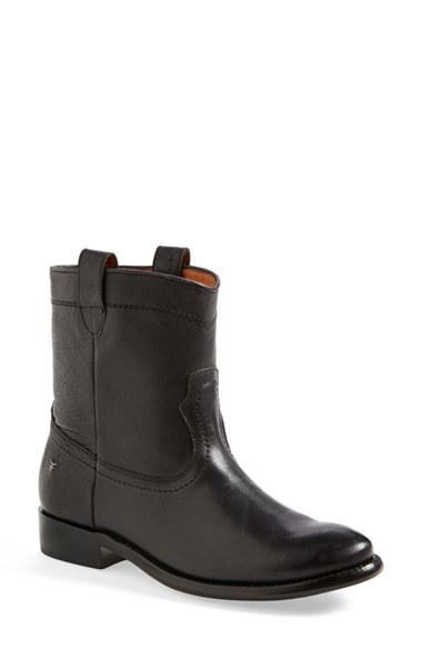 Western-inspired stitching amplifies the rugged style of a classic short boot cast in richly textured leather. Color(s): dark brown. Brand: TRASK. Style Name: Trask 'Ada' Boot (Women). Style Number: 865765.