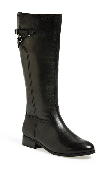 Adjustable straps and hidden elastic goring insets near the calf perfect the fit of a classic English riding boot crafted from vegetable-tanned leather. Color(s): black, cognac. Brand: Trotters. Style Name: Trotters 'Signature Lucky' Leather Boo