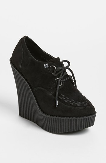 A bold wedge enhances the punk appeal of an eye-catching suede creeper. Color(s): black. Brand: T.U.K. Style Name: T.U.K. 'A8375L' Wedge Creeper. Style Number: 905686.