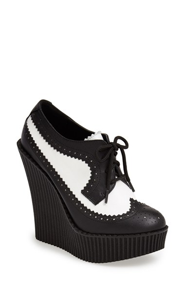 A super-chunky ribbed heel and platform reimagine an old-school saddle shoe, taking the look from vintage to future-cool. Color(s): black/ white. Brand: T.U.K. Style Name: T.U.K. Wingtip Creeper Wedge (Women). Style Number: 823366.