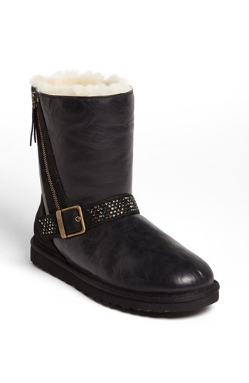 Cool, moto-inspired details and twinkling Swarovski crystals detail a classic winter boot with genuine shearling lining to keep your feet warm, whatever the weather. Color(s): black, ink blot. Brand: UGG Australia. Style Name: UGG Australia 'Blaise