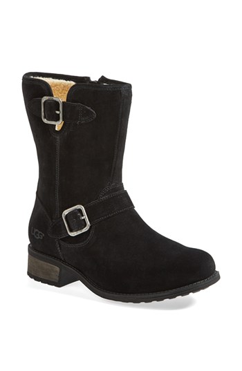 UGG Australia 'Chaney' Water Resistant Suede Moto Boot (Women) Black Size $199.95 Style: 887278937654