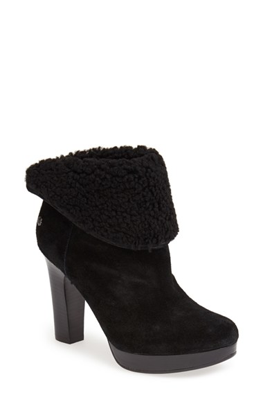 Flash sumptuous shearling or keep it under wraps in a sultry-soft bootie boosted by a stacked heel and platform. Color(s): black/ black, brown. Brand: UGG Australia. Style Name: UGG Australia 'Dandylion' Bootie (Women). Style Number: 672081.