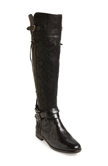 Striking woven texture distinguishes an over-the-knee boot handcrafted in Italy and styled with wraparound belts and hand-knotted leather laces. A genuine shearling footbed adds warmth and comfort to every step. Color(s): nero leather. Brand: UGG Australi
