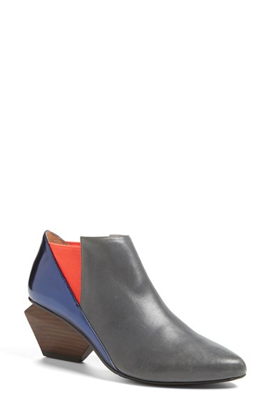 Bold color blocking and a striking, architectural heel update a sleek, stylish bootie. Color(s): dark grey/ red/ metallic navy. Brand: UNITED NUDE COLLECTION. Style Name: United Nude Collection 'Jacky' Bootie (Women). Style Number: 807262.