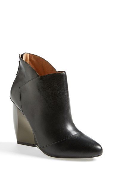 A gleaming metallic finish highlights the geometric wedge heel of a stunning, modern cap-toe bootie shaped from smooth calfskin. Color(s): black. Brand: UNITED NUDE COLLECTION. Style Name: United Nude Collection 'Sera' Leather Bootie (Women). St
