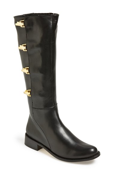 Sleek goldtone hardware provides a striking modern update for a smooth leather riding boot. Color(s): black nappa. Brand: VANELi. Style Name: VANELi 'Realyna' Tall Leather Boot (Women). Style Number: 710516.