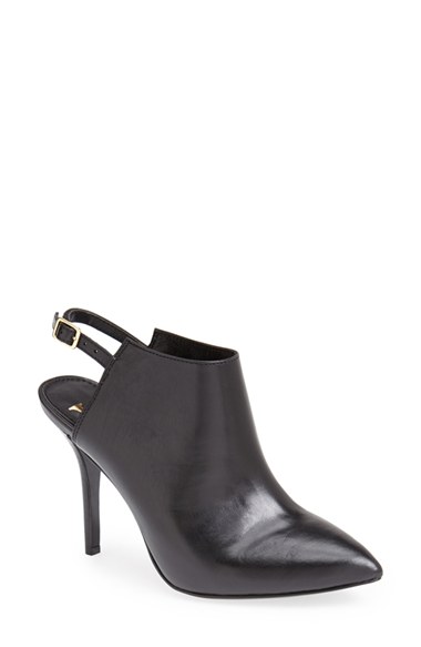 Open-heel ankle booties are officially in season. This incarnation combines a pretty pointed toe, buttery-soft leather or suede and a slender slingback strap to elegant effect, delivering a look that's at once polished and just edgy enough to make an impression. Color(s): nero leather, nero suede. Brand: VC SIGNATURE. Style Name: VC Signature 'Calven' Slingback Pointy Toe Bootie (Women). Style Number: 830890.